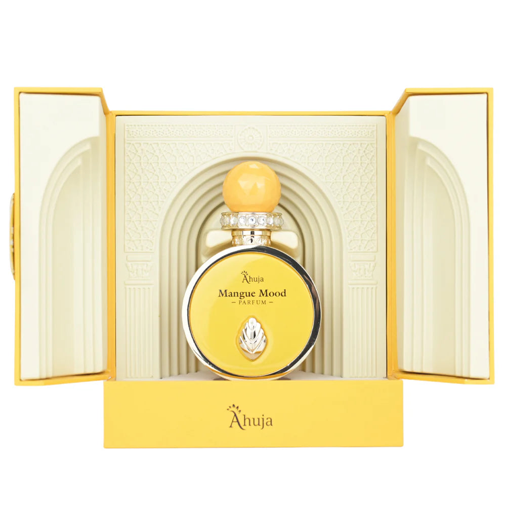 AHUJA Mangue Mood – 3.4 oz Parfum | Unisex Mango Floral Scent | 35% Long Lasting Oil | Alphonso Mango, Bergamot, Tuberose, Amber, Sandalwood | Luxury Yellow Gift Box | “Some Moods Stay Golden”