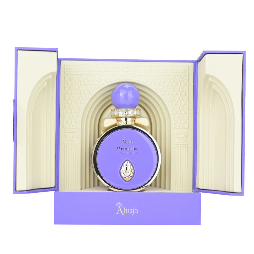 AHUJA Memories – 3.4 oz Parfum | Unisex Elegant Floral Amber Scent | 35% Long Lasting Oil | Pink Pepper, Bergamot, Rose, Milky Accord, Patchouli, Ambroxan | Luxury Purple Gift Box