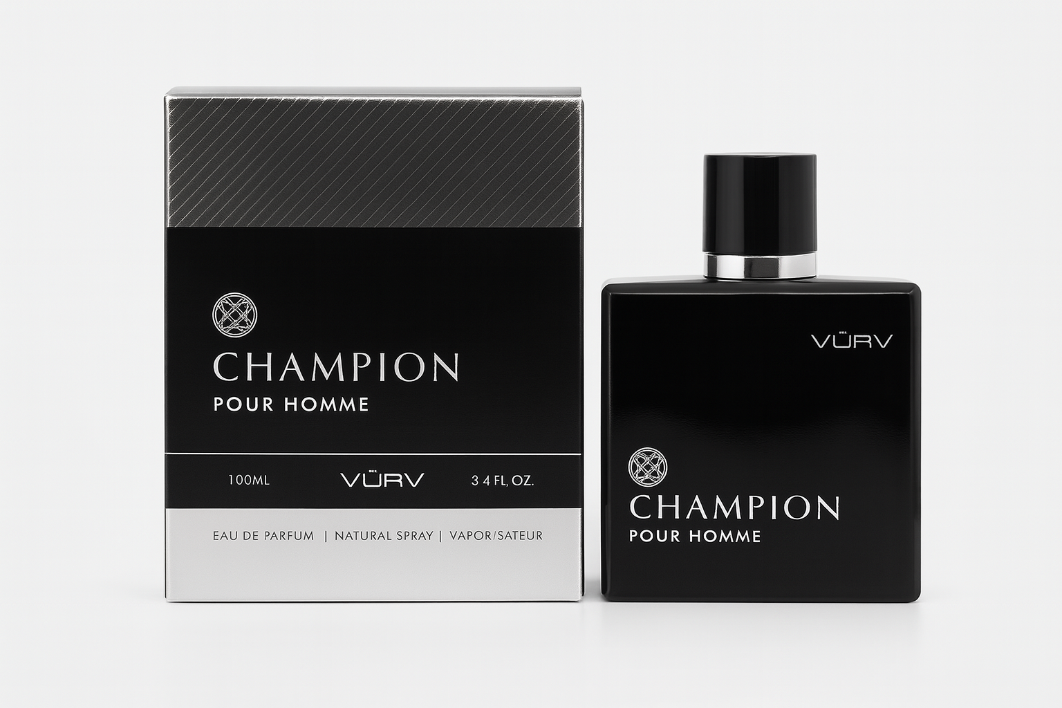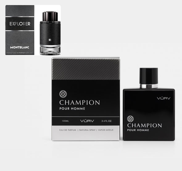 Experience the masculine and enduring scent of CHAMPION POUR HOMME EDP by VÜRV. With top notes of Bergamot and Pink Pepper, complemented by the warmth of Leather and Jasmine, and grounded by Amber and Oakmoss, this 100mL EDP is the perfect balance of freshness and sensuality. Elevate your style with this dynamic fragrance today.