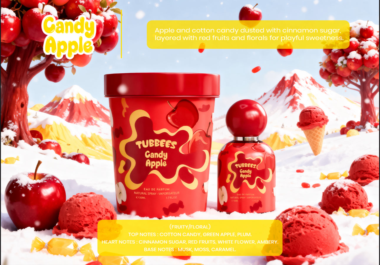 Indulge in TUBBEES CANDY APPLE 50ML BY LE GRANDEUR. This unique fragrance combines the crispness of apples and the sweetness of cotton candy, dusted with cinnamon sugar for a playful twist. Layered with red fruits and delicate florals, this scent will leave you feeling sweet and playful all day long.