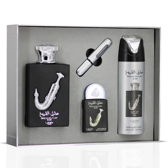 Ishq Al Shuyukh Silver 3-Piece Perfume Gift Set by Lattafa Pride