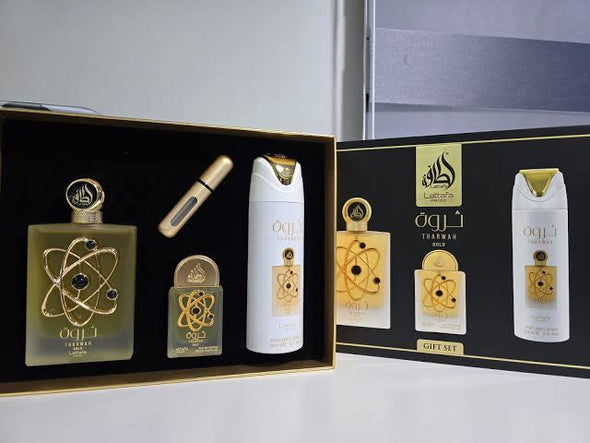 GIFT SET THARWAH GOLD WOMEN - 3 Piece Eau De Parfum Gift Set BY LATTAFA PRIDE