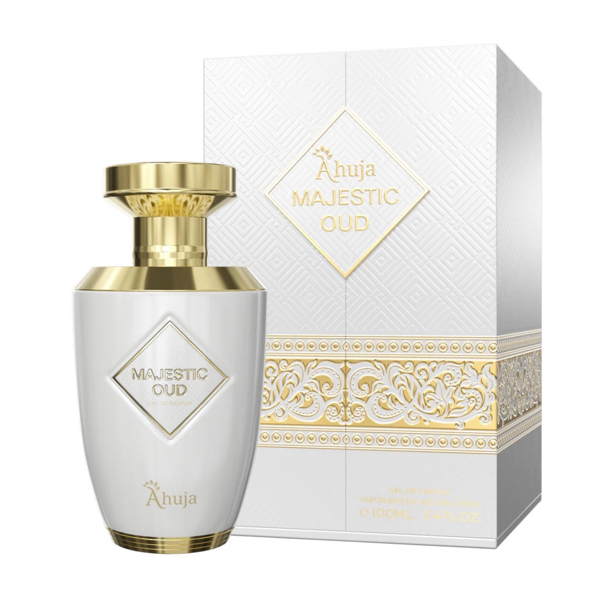 AHUJA Majestic Oud Eau De Parfum 3.4 fl oz – Unisex Perfume for Men & Women, Long Lasting Luxury Fragrance with Oud, Vanilla, Raspberry, Rose, Peony, Patchouli & Woody Notes – Elegant Gift Scent