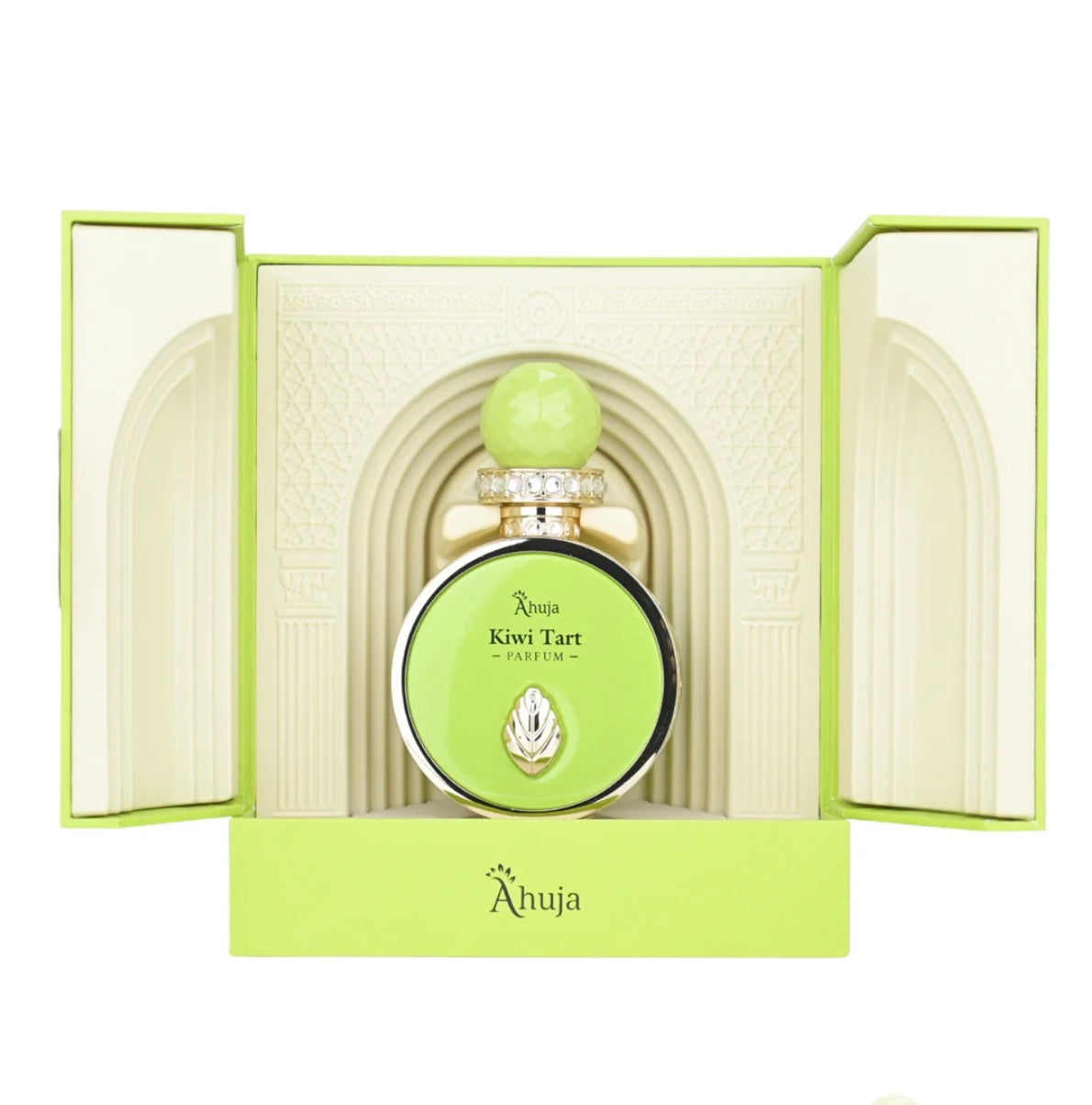 AHUJA – KIWI TART | “Sweet bites back.” Kiwi Tart is bright, bold, and unapologetically full of personality. It opens with a crisp snap of kiwi, layered with apple and bergamot, giving the scent a lively, juicy freshness. A spark of pink pepper adds playful heat — sharp enough to catch attention, smooth enough to stay addictive. The heart brings depth and texture. Bourbon geranium adds aromatic body, while sage cools the blend with a clean, herbal freshness that keeps the fragrance polished and modern. As it settles, amber, patchouli, and tonka bean melt together into a warm, rich dry down — smooth, energetic, and grown. A perfect contrast to the bright opening. Crafted with 35% high-quality parfum oils, Kiwi Tart lasts long and evolves beautifully on the skin. Packaged in a vibrant green luxury box with embossed texture, swirling marble artwork, and golden chamber design, Kiwi Tart is as striking to display as it is to wear. Kiwi Tart isn’t quiet. It’s confidence bottled. Sweet — but with a bite.