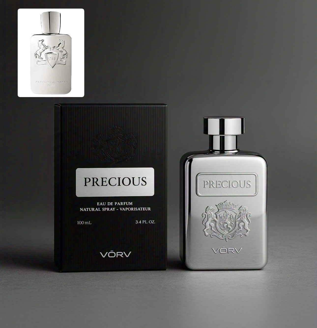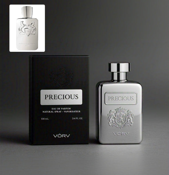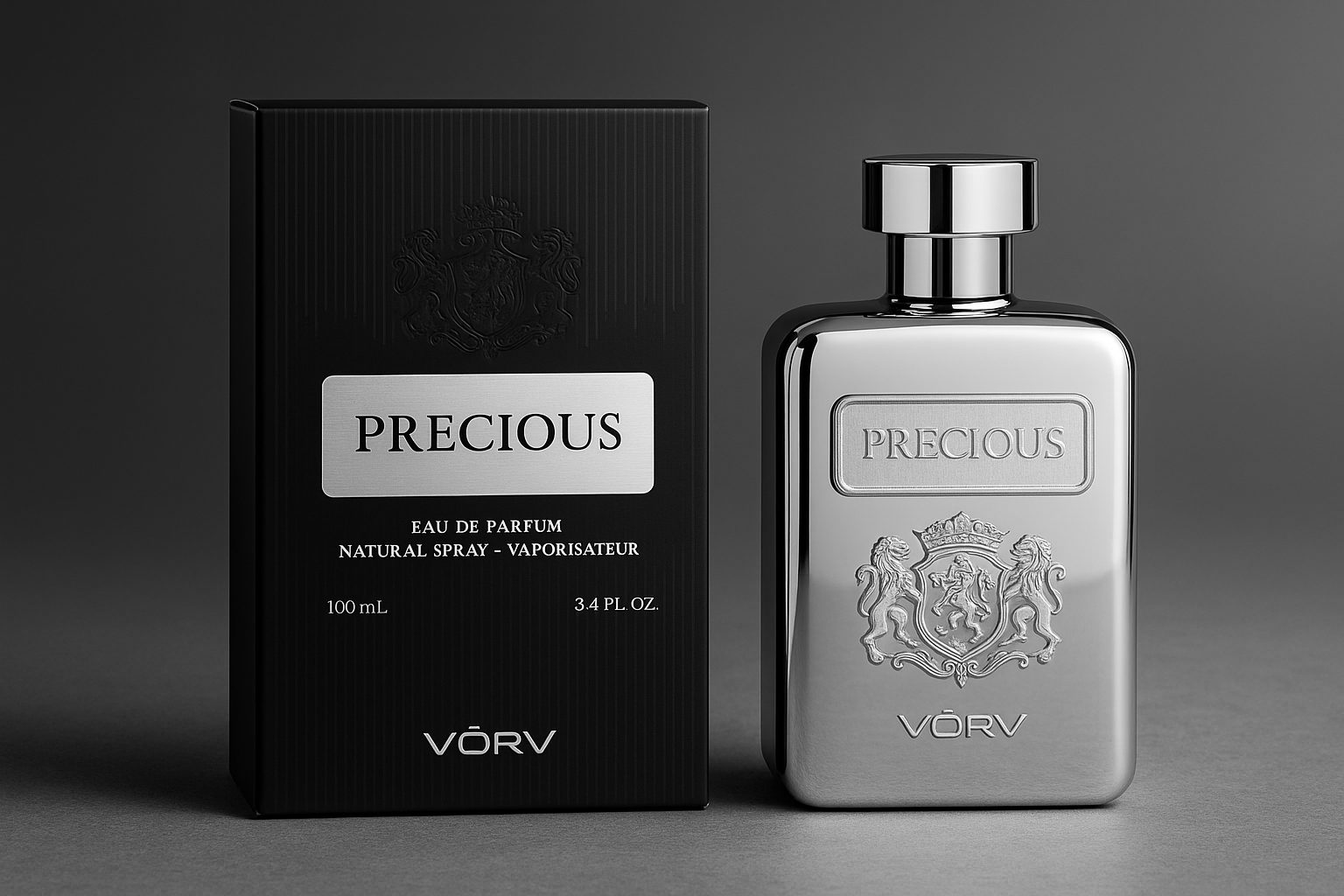 Experience the irresistible scent of Precious Men EDP by VURV. This 100ml (3.40z) fragrance is expertly crafted with top notes of cumin, bergamot, and heliotrope, followed by middle notes of lavender, almond, and jasmine. The base notes of amber, vanilla, and sandalwood add a warm and alluring touch. Enhance your confidence with this captivating scent."