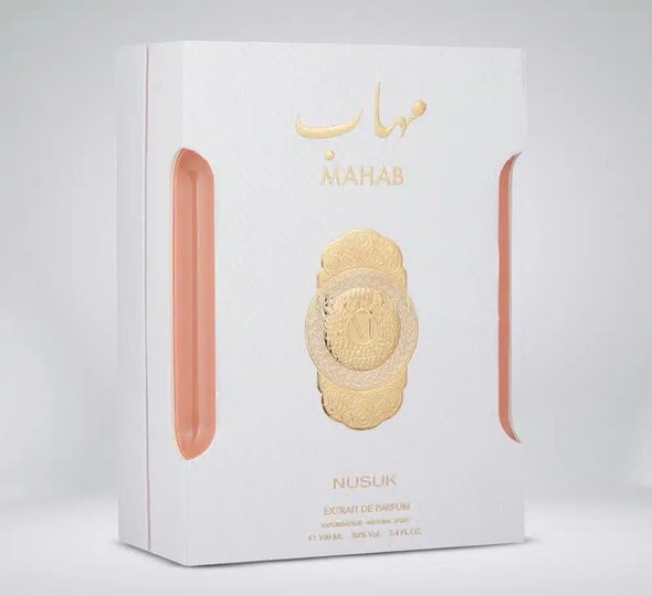 Experience the luxurious and sensual fragrance of MAHAB WOMEN EXTRAIT by NUSUK. Top notes of Pear, Hazelnut, and Olibanum blend with Middle notes of Osmanthus, Saffron, Rose, and Jasmine Sambac for a captivating scent. The base notes of Sandalwood, Vanilla, and Akigalawood provide a long-lasting and alluring finish. Indulge yourself with this 100ml (3.4oz) perfume.